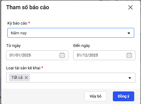 • Chọn loại tài sản cụ thể nếu chỉ muốn xem báo cáo tài sản thuộc loại đó.