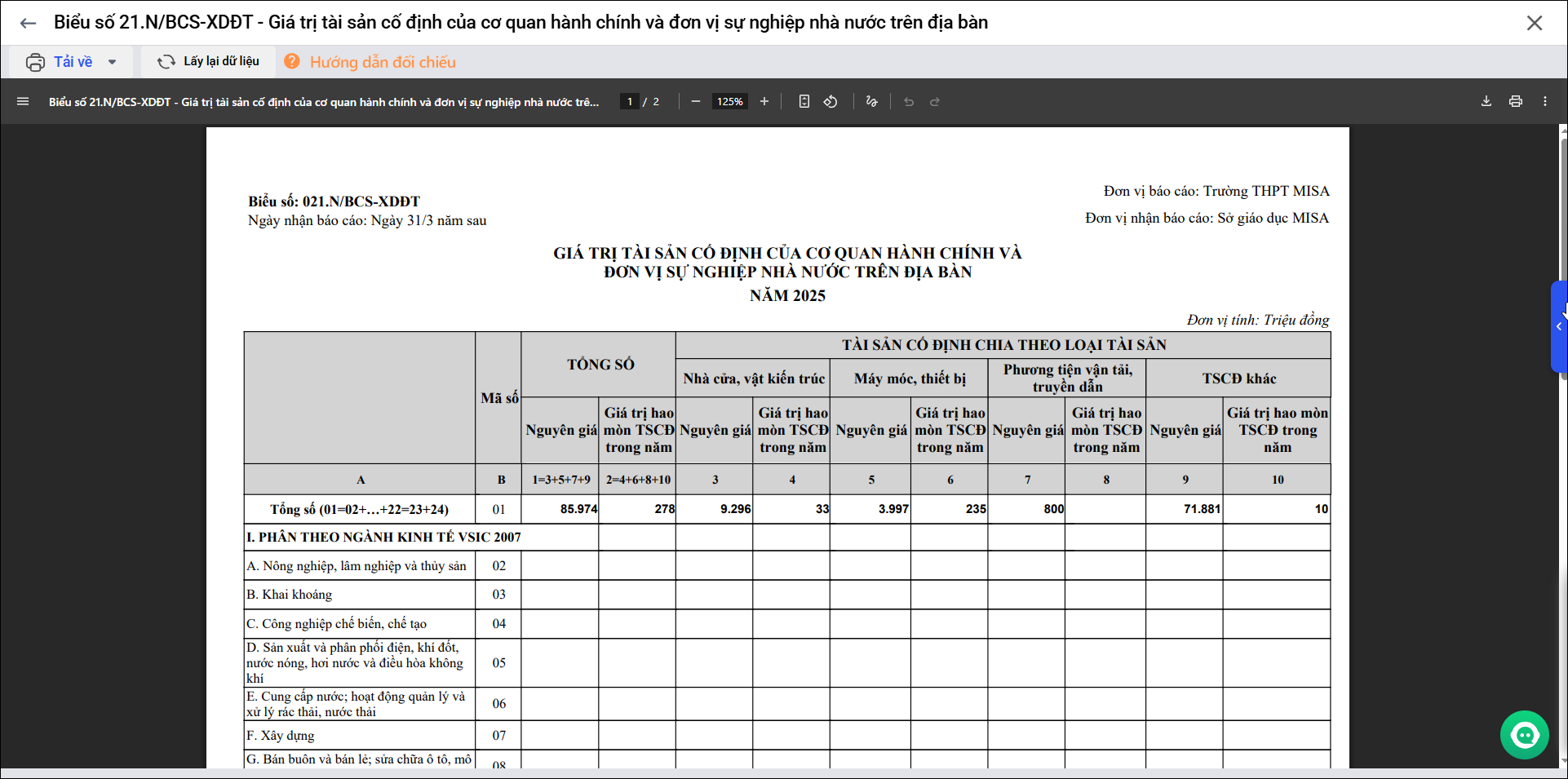 Bài viết này giúp anh/chị in được Biểu số 21.N/BCS-XDDT – Giá trị tài sản cố định của cơ quan hành chính và đơn vị sự nghiệp nhà nước trên địa bàn.