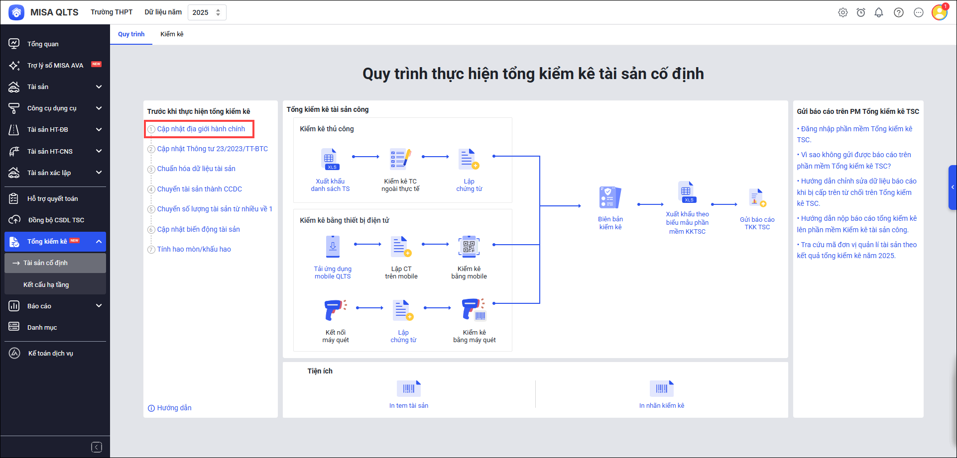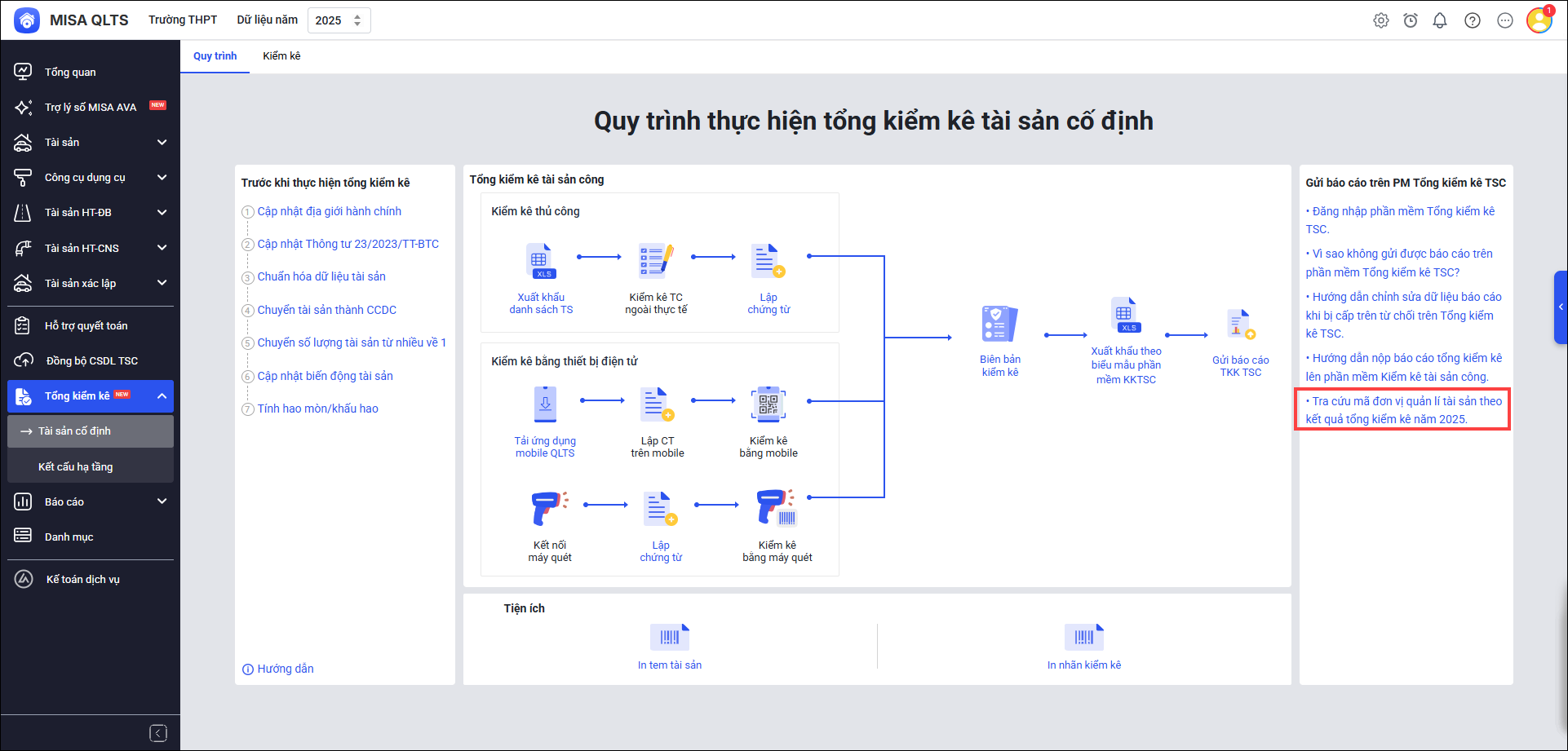 4. Cán bộ QLTS muốn theo dõi quy trình tổng kiểm kê năm 2026 và nắm bắt các điểm cần lưu ý