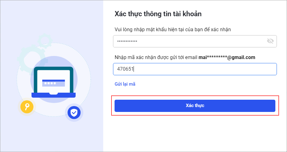 Bước 3: Điền mật khẩu và xác thực thông tin tài khoản