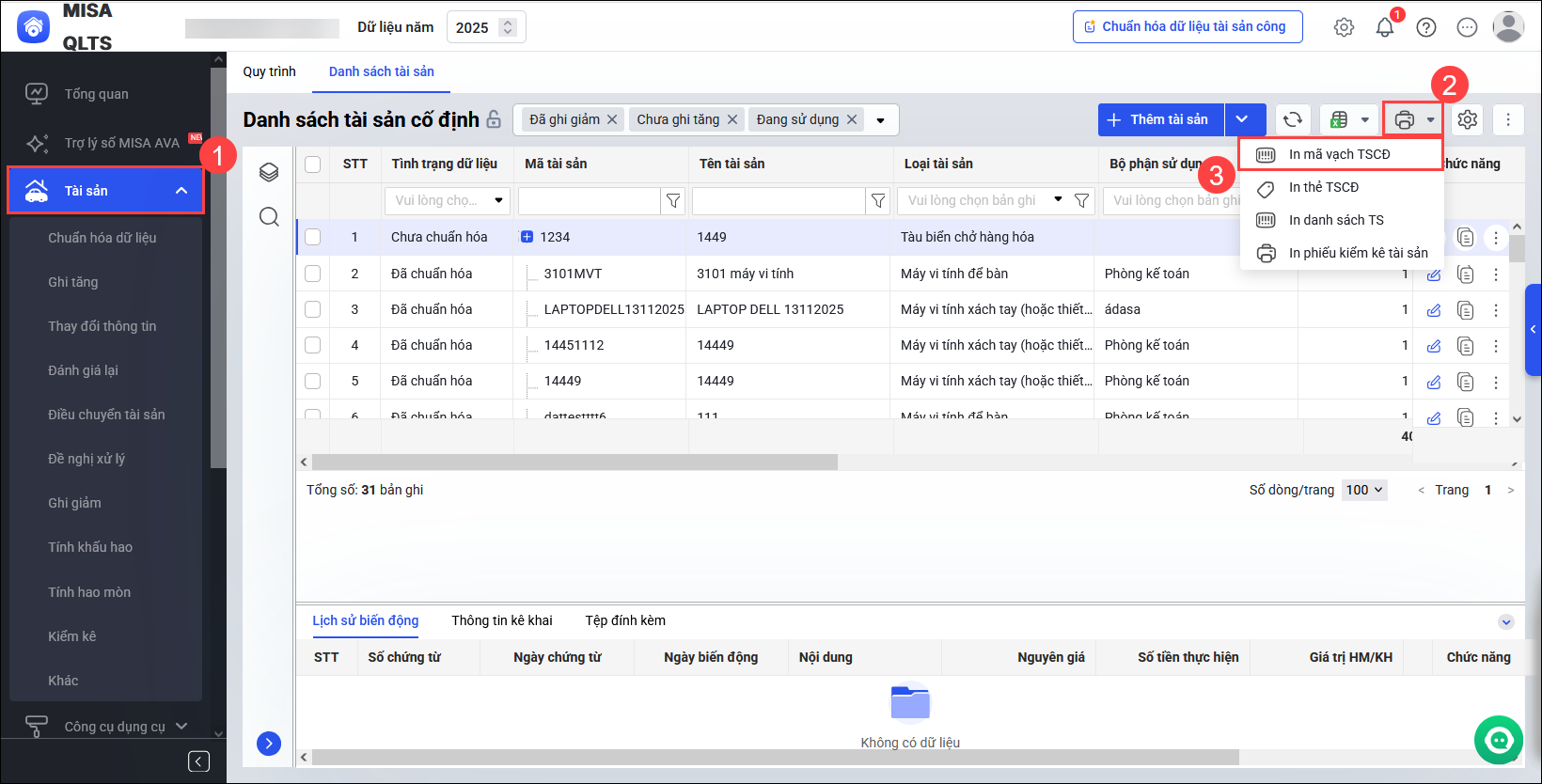 Trong quá trình quản lý tài sản, đơn vị thường cần in tem tài sản hoặc in mã vạch tài sản để dán trực tiếp lên từng tài sản nhằm phục vụ việc nhận diện, theo dõi, kiểm kê và đối chiếu thông tin nhanh chóng.
