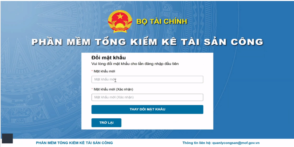- Hệ thống bắt buộc đổi mật khẩu ngay lần đầu đăng nhập để đảm bảo an toàn.Mật khẩu mới phải đảm bảo có ít nhất tám ký tự, bao gồm chữ viết hoa, viết thường, ký tự đặc biệt và số.
