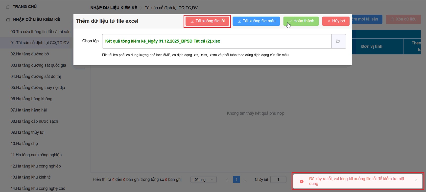 2.2. Lỗi định dạng file khi nhập khẩu lại dữ liệu tài sản