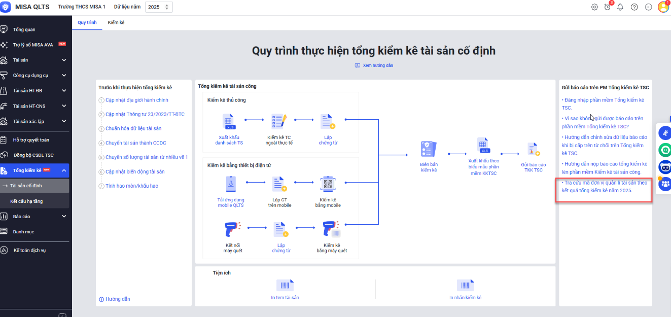 Tra cứu Mã đơn vị quản lý tài sản theo kết quả tổng kiểm kê năm 2025